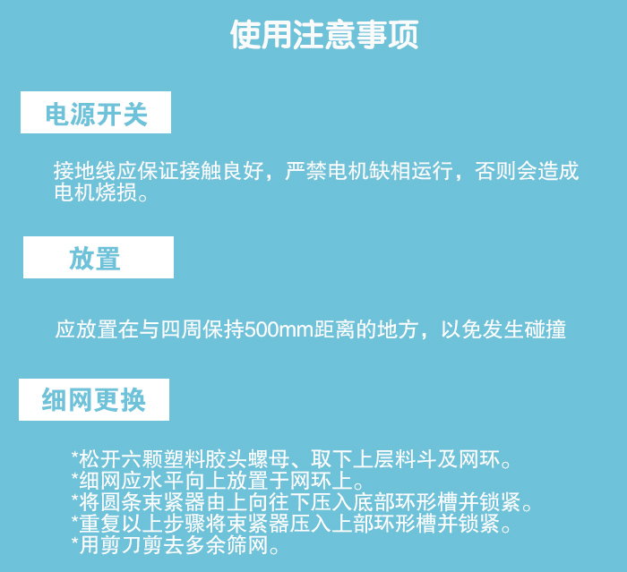 1.電源開關(不可使用閘刀開關)及接地線應保證接觸良好,嚴禁電機缺相運行,否則會造成電機燒損。