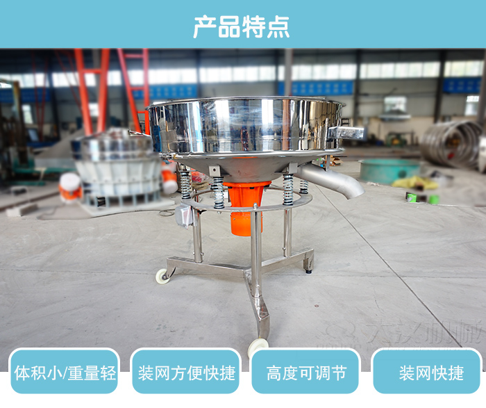 2.震動頻率高、達3000次/分,對細粒度、高粘度物料過篩效果更明顯。獨特篩網結構,裝網方便快捷。